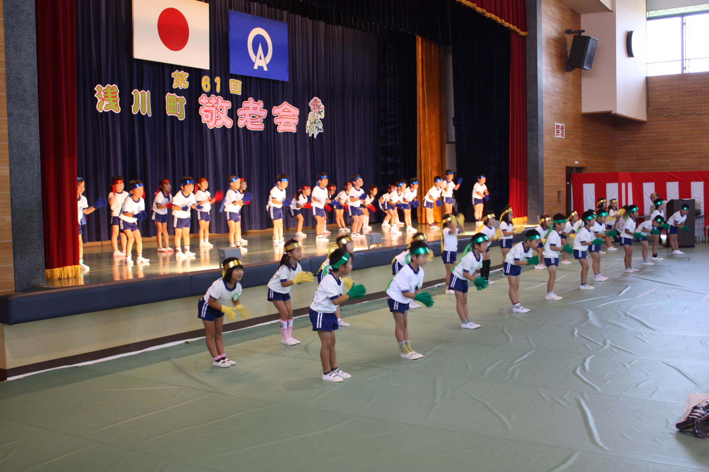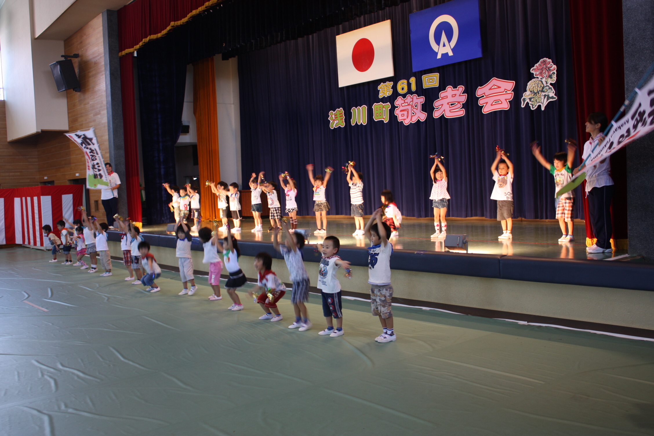 式典の後は、お楽しみの演芸が行われ、町内の各団体の皆さんや幼稚園・保育所の子ども達の歌や踊りが披露されました。